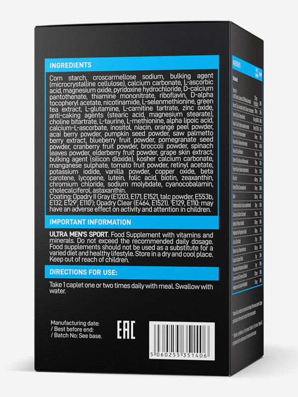 Содержит более пятидесяти активных ингредиентов, направленных на поддержание общего здоровья и всесторонней активности мужчин, нормализации мышечных функций и синтеза протеина, энергетического метаболизма и функций нервной системы.
